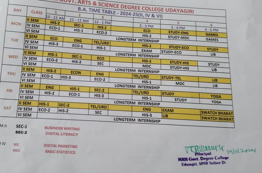 DEPARTMENT OF ECONOMICS Semester Wise Time Tables